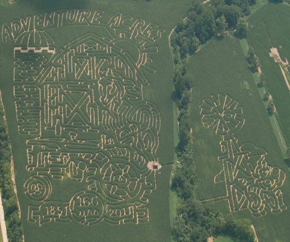 This maze design helps celebrate the company's 160 years of farm life. Located in Bellbrook OH on around 18 acres of ground this maze design has 8.7 miles of trail to enjoy.