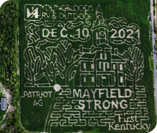 Nothing can stop Mayfield, not even a tornado! A-Maize-ing Farms Corn Maze in Mayfield, Kentucky have another exciting maze design. Come out and enjoy the fall weather as you get lost in this maze.