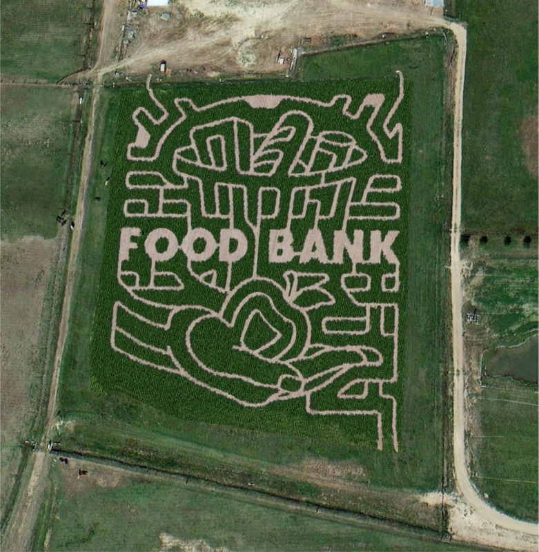 This maze is a reminder to help others by donating to the local food banks. There are 2 mazes and 1.7 miles of path to follow in this design at 8100 Pyramid Hwy, Andelin Farms in Spanish Springs, Nevada