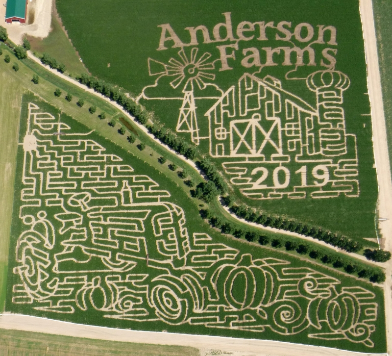 A farmers work is never done. Anderson Farms in Erie, Colorado has a maze design this year that will have you enchanted as you get lost in its winding paths.