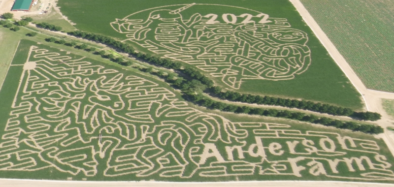 Anderson Farms in Erie, Colorado has a megical design featuring a narwhal, unicorn and a sloth. Come have a great time exploring this fun corn maze this fall.