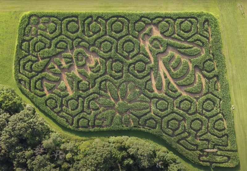 Blue Ridge Mountain Maze in Lovingston, VA has a bee themed design for this years maze. Come out and hike around the trails of this amazing corn maze.