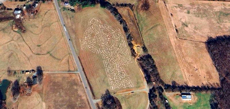Cane Creek Corn Maze in Snow Camp, North Carolina is celebrating heritage and history this season with a stunning Celtic Cross–themed corn maze! This intricate design is sure to delight maze-goers as they wind through the pathways inspired by timeless Celtic artistry. Come explore the maze, enjoy fall festivities, and connect with tradition at Cane Creek Corn Maze!