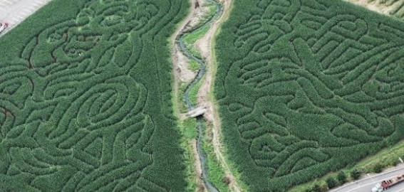 This year in Kent, Washington Carpinito Brothers Farm decided to do a Zombie Themed maze design. The field is divided up into 2 parts with an undead corn maze zombie on each side. In this approximatley 7 acres there are a total of 3.6 miles of path to avoid the Zombies in.
