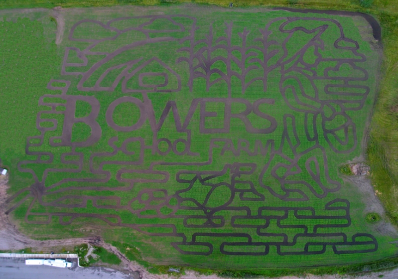 Farm life and lessons at school, this logo/farm design depicts what the kids there do and learn. There are 4 mazes of different sizes with a total of 4 miles to walk in pathways. This maze helps support the school and the edcuation of the children in their care. Show your support by going to the maze at 1219 E. Square Lake Rd, Bloomfield Hills MI