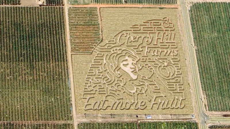 Cherry Hill Farms in Nampa, Idaho is encouraging everyone to “Eat More Fruit” with their vibrant 2024 corn maze design! This maze celebrates the farm’s mission of sharing delicious, homegrown goodness — from crisp apples to juicy peaches. Come get lost in the fun, taste the sweetness of the season, and enjoy a day of family-friendly farm adventures!