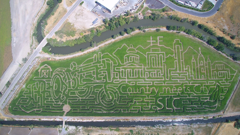 In Salt Lake City, Utah, at Cross E Ranch corn maze, the country and the city come together in this large maze! Join Cross E Ranch for their Fall Festival beginning September 22nd.