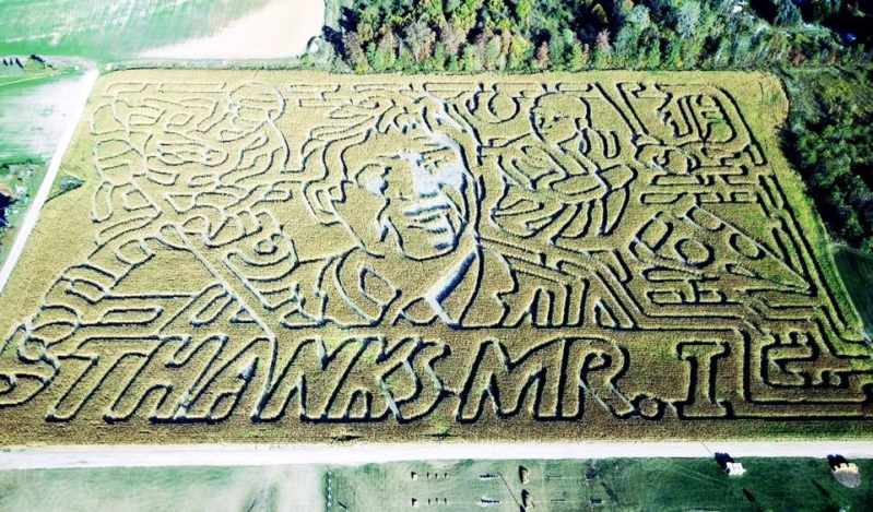 Debuck’s Corn Maze in Belleville, Michigan, celebrates the life of Mike Ilitch (Mike I.). He was an American entrepreneur who owned to sports teams (Detroit Tigers and Detroit Red Wings) and was the founder of Little Caesars Pizza.