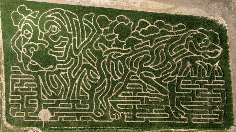 Deep Roots corn maze design features man's best friend on a large scale. The Lab is America's favorite pet, so come out to Caledonia, Michigan and you'll have a dog gone good time.