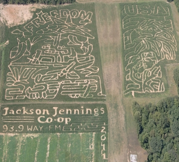 Join the Armed Forces with this design and celebrate our freedom while walking the 2.7 miles of pathway in the three different mazes on abaout 8 acres in Lanesville, IN