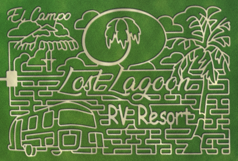 El Campo Lost Lagoon RV Resort in El Campo, TX has a wonderful design featuring palm trees and tiki huts. Take some time to visit this exciting corn maze. You won't regret it.