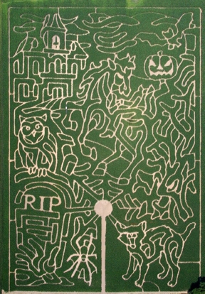 This halloween inspired maze gives multiple starting point choices for the fun to begin in this 18 acre field in Lafayette, IN. Choose one of the 4 mazes to walk or enjoy them all for a total of 6.3 miles of trail.