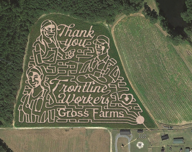 Gross Farms in Sanford, North Carolina is grateful to the frontline workers this season. Come explore this wonderfully entertaining corn maze.