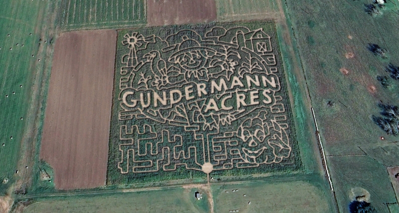 Gundermann Acres in Wharton, Texas is showing off their farm pride in 2025 with a corn maze design featuring the Gundermann Acres logo. Explore the trails, meet the friendly scarecrow, and enjoy a fun-filled fall adventure on the farm. Learn more at GundermannAcres.com.