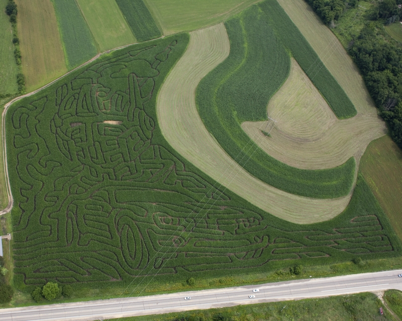 In this maze design you can get lost and drive out with the best in this about 12 acre 3 maze design, choose to do all of them for 5.1 miles of walking and getting turned around or only one in West Salem, WI