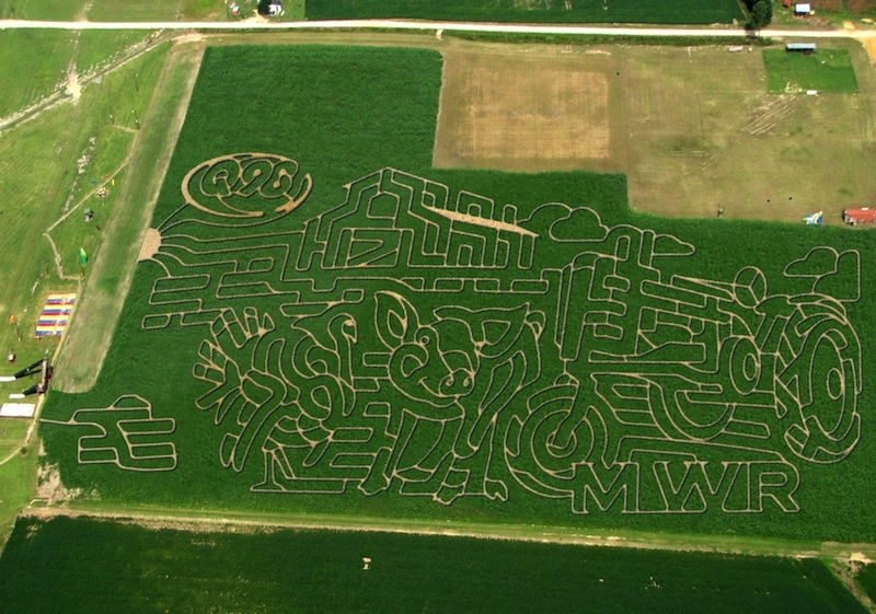 With a sponsor logo the animals in Clinton, NC. help keep life busy on the approximately 4 acre maze design. 2.1 miles of trail cut into the corn give you a great family experience/