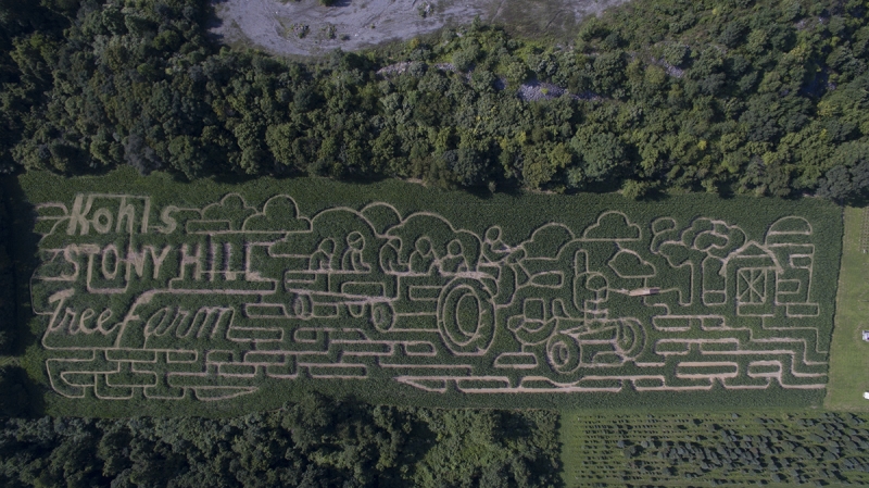 Kohl's Stony Hill Tree Farm's Corn Maze is located in Amish Country in Milton, Pennsylvania. This corn maze shows all the fun that can be had on the farm with hayrides, corn maze, and a giant barn that has a huge Christmas store inside. Come on out and have the best fall ever.