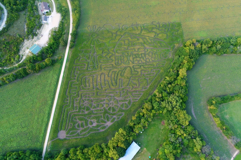 Lazy T Ranch Adventures in Manhattan, KS has a farm theme for this years design. Come out and get lost in this amazing corn maze this fall.