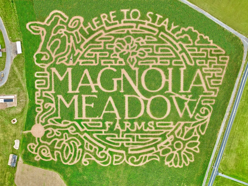 Magnolia Meadow Farms in Thurmont, MD have a design featuring the Magnolia Meadow Farms logo this year. Come enjoy the fall air and get lost in this awesome corn maze.
