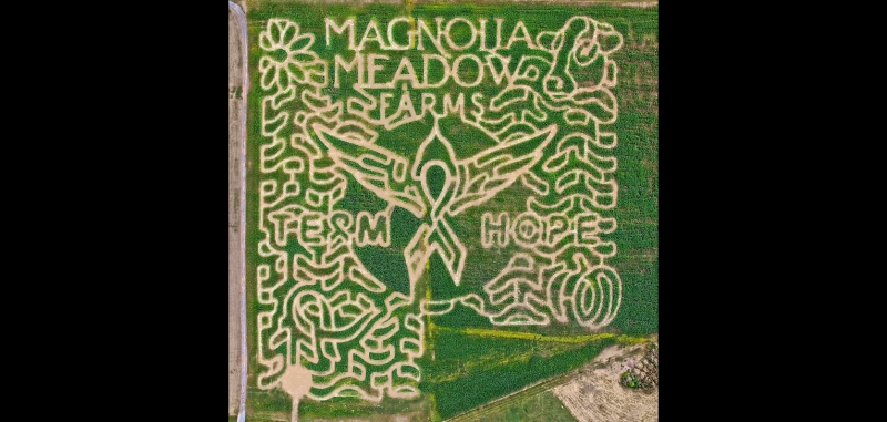 Magnolia Meadow Farms in Thurmont, MD has a design dedicated to fighting breast cancer for their 2024 maze design. Come enjoy the fall air and get lost in this awesome corn maze.