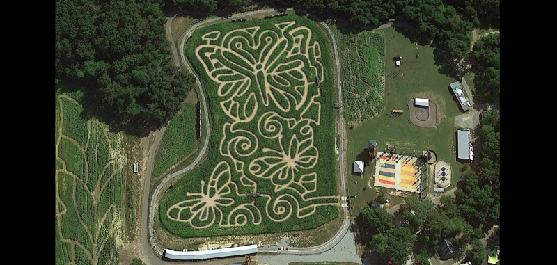 Kersey Valley corn maze located in High Point, North Carolina, has a butterfly-themed maze design for 2024. You can have a great time getting lost in the twisted paths of this stupendous corn maze.