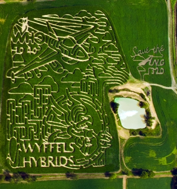 This sponsored design wants to fly away with you into the deep blue sky and save this chapter . Go for the adventure in Des Moines, IA enjoying one of or all of the 4 mazes totaling 7.2 miles of path covering about 16 acres.