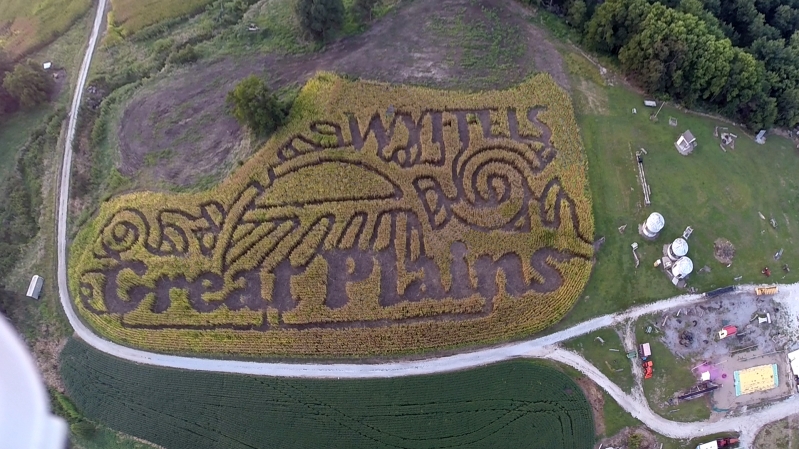 North River Adventure close to Des Moines, Iowa has this years corn maze sponsored by Wyffels and Great Plains. Two great companies in the agriculture business are teaming up to offer a great corn maze this year. Have a blast exploring all the paths this fall.