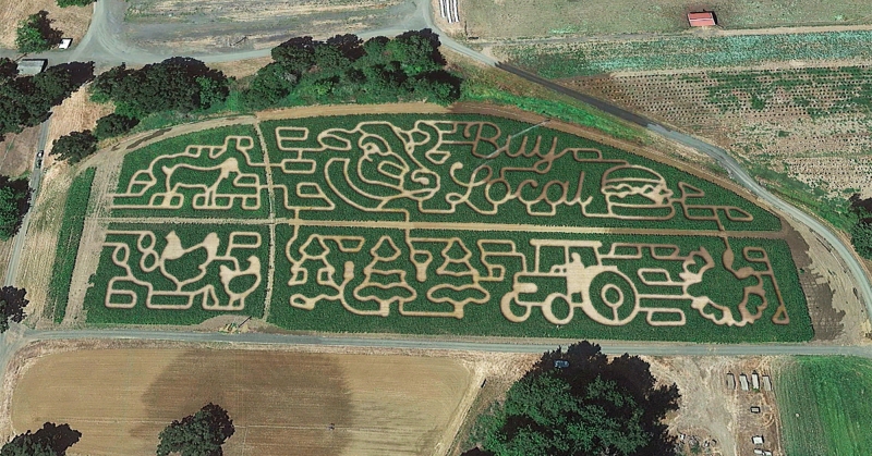 Ready to shop ‘til you crop? Northern Lights Christmas Tree Farm in Pleasant Hill, Oregon is celebrating all things local in 2025 with a “Buy Local” corn maze featuring a tractor, a goat, a cow, chickens, a sunflower, a hamburger, and Christmas trees. Come support local agriculture, explore the maze, and make merry memories this fall.