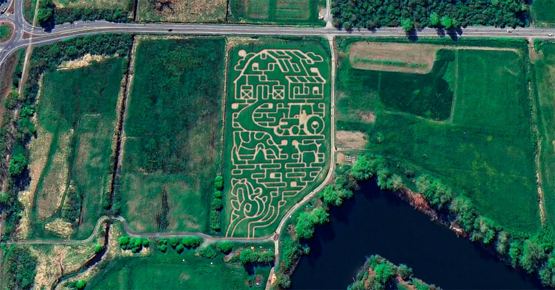 Ready to get a little corny on the farm? Novelty Hill Farm in Duvall, Washington is celebrating the season with a farm-themed corn maze featuring a barn, tractor, cow, sheep, and pumpkins. Come enjoy the crisp fall air, wander the trails, and make unforgettable family memories.