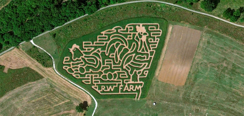 Rutledge-Wilson Farm Park in Springfield, Missouri is hatching up fun in 2025 with a corn maze design featuring a chicken laying eggs and a proud rooster. Bring the whole family to enjoy fall on the farm, get lost in the maze, and make memories worth crowing about. Visit ParkBoard.org for details.