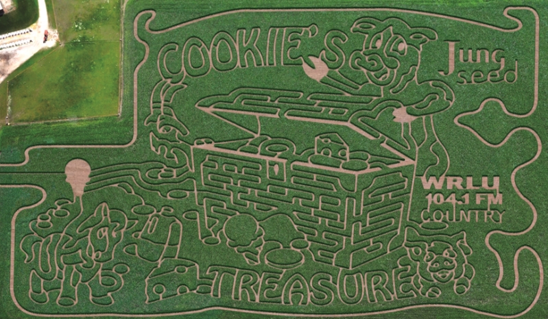 Cookie and friends await your arrival at Schopf Dairy. Walk the 1 mile path or navigate the 5.4 miles in the 3 mazes put together to make this design. The party has started join them at 5655 Mathey Rd, Sturgeon Bay, WI.