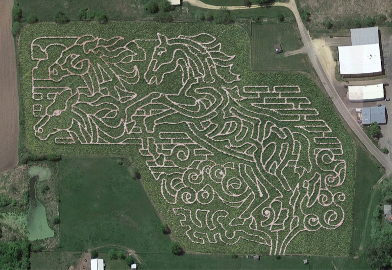 Wild horses run free in this year's maze design for Shafer's Corn Maze in Center City, MN.