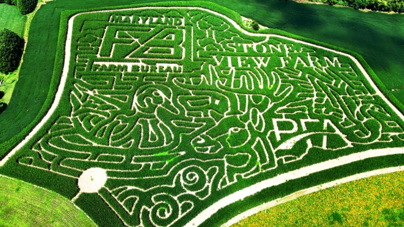 The 2025 maze at Stone View Farm in Darlington, Maryland celebrates the Maryland Farm Bureau, featuring graceful ducks and deer in its design. This tribute highlights the beauty of local agriculture and wildlife working hand in hand. Come explore this scenic maze, enjoy fall festivities, and celebrate Maryland’s farming heritage!