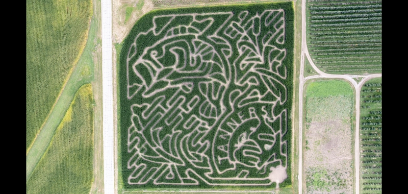 Tanner's Orchard corn maze in Speer, Illionois has a fishing theme this year. You will have a blast as you get lost in the twisting paths of this corn maze.