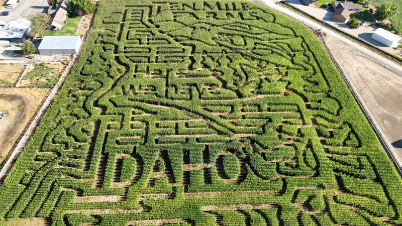 Ten Mile Farms in Meridian, Idaho is celebrating the Gem State in 2025 with a fisherman-and-fish-themed corn maze. Cast your way through winding trails, enjoy the beautiful fall scenery, and make unforgettable family memories.