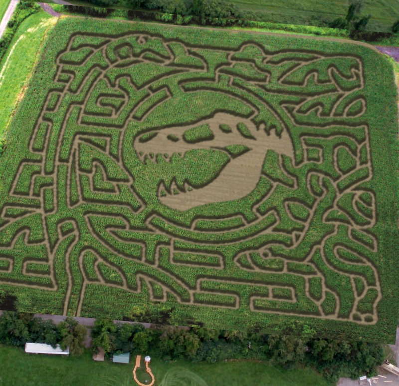 The Corn Maze in Clarence New York has gone back to the time of Dinosaurs. Bring your family and enjoy a weekend of getting lost in our 2.4 miles of trail. This 5 acre maze will keep you entertained for hours. Click here for more information about The Great Pumpkin Farm