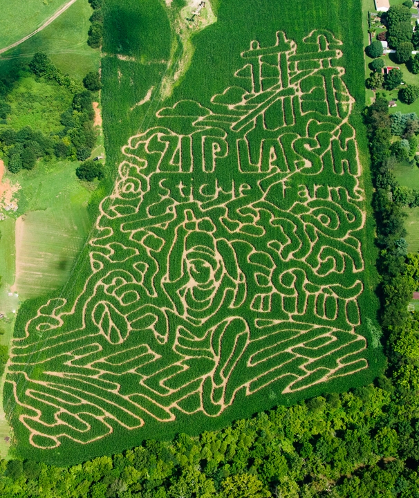 Stickley Farms wanted to introduce their unique and brand new Zip Line that they installed this year. What better way to do that than choose it as a maze design. Their zip line even zips over a portion of the maze. Looks like a lot of fun.