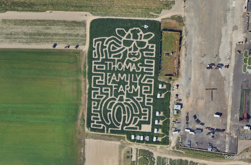 Thomas Family Farm in Snohomish, Washington is your destination for farm fun. Come out and enjoy the farm animals and fresh produce and try not to get lost in this a-maize-ing corn maze.