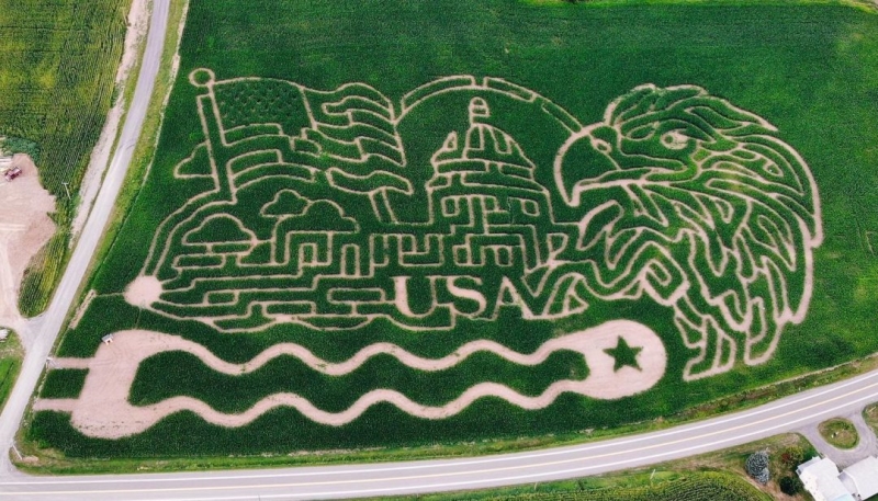 Trinity Valley Dairy has a patriotic theme for this year's design. Come to Cortland, NY to enjoy this fun and challenging corn maze. This maze will fascinate and entertain you for hours with its twists and turns.